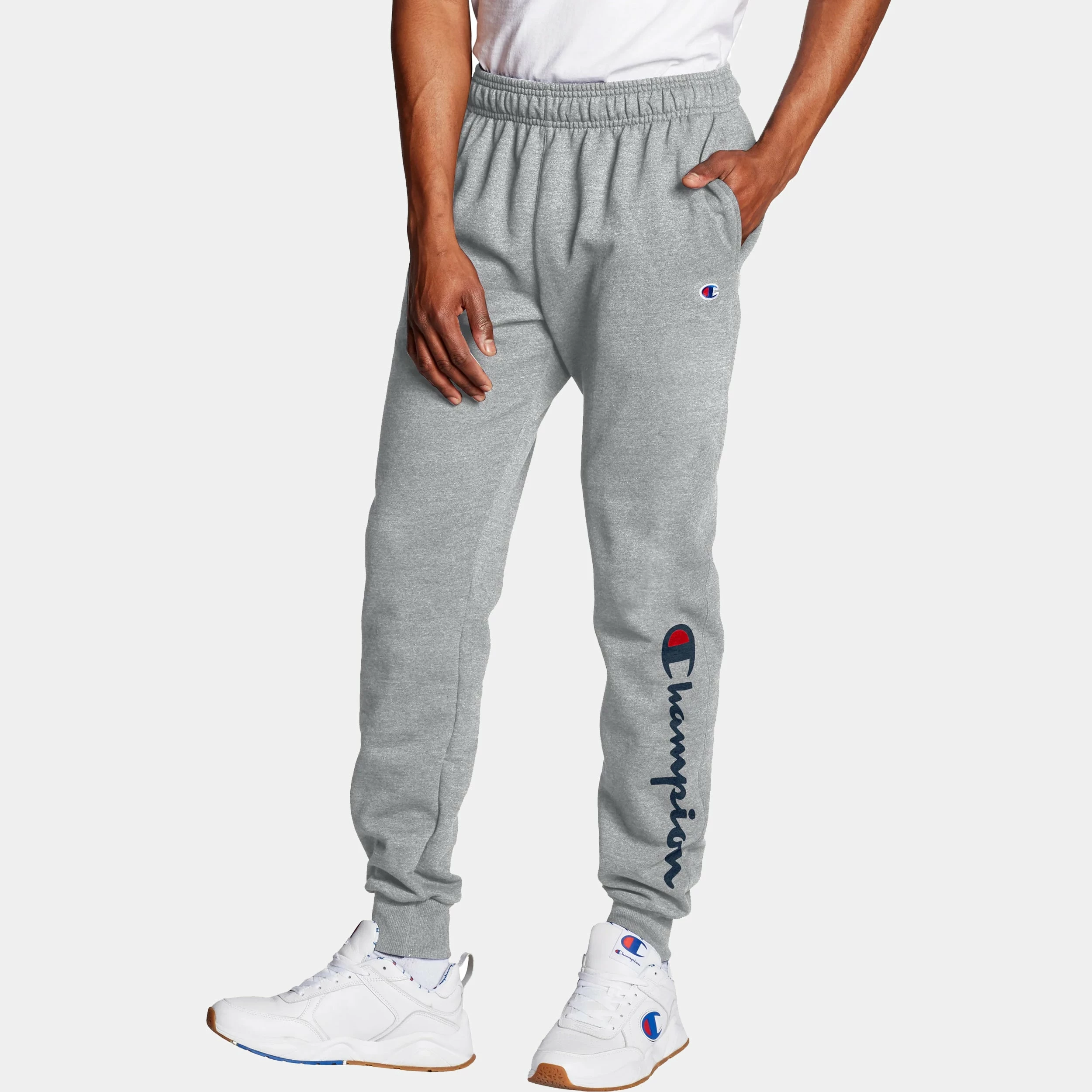 Midweight Powerblend Joggers strike the perfect balance of warmth and durability without the extra weight. Made with a tapered leg and ribbed cuffs to level up your sport look at the gym or kicking back on the weekend. Roomy side pockets to hold your ID and phone. The soft, cotton blend creates a fleece with less shrinkage and pilling. Constructed with extra stitch details, so they make the grade no matter how hard you play. Part of our Champion Made® initiative, Powerblend fleece is made with traceable U.S. grown cotton–it’s some of the most responsibly produced cotton you’ll find in the world and requires 2-5 times less water. Even better, we use up to 10% recycled polyester fibers, which helps keep recycled plastic bottles out of landfills.